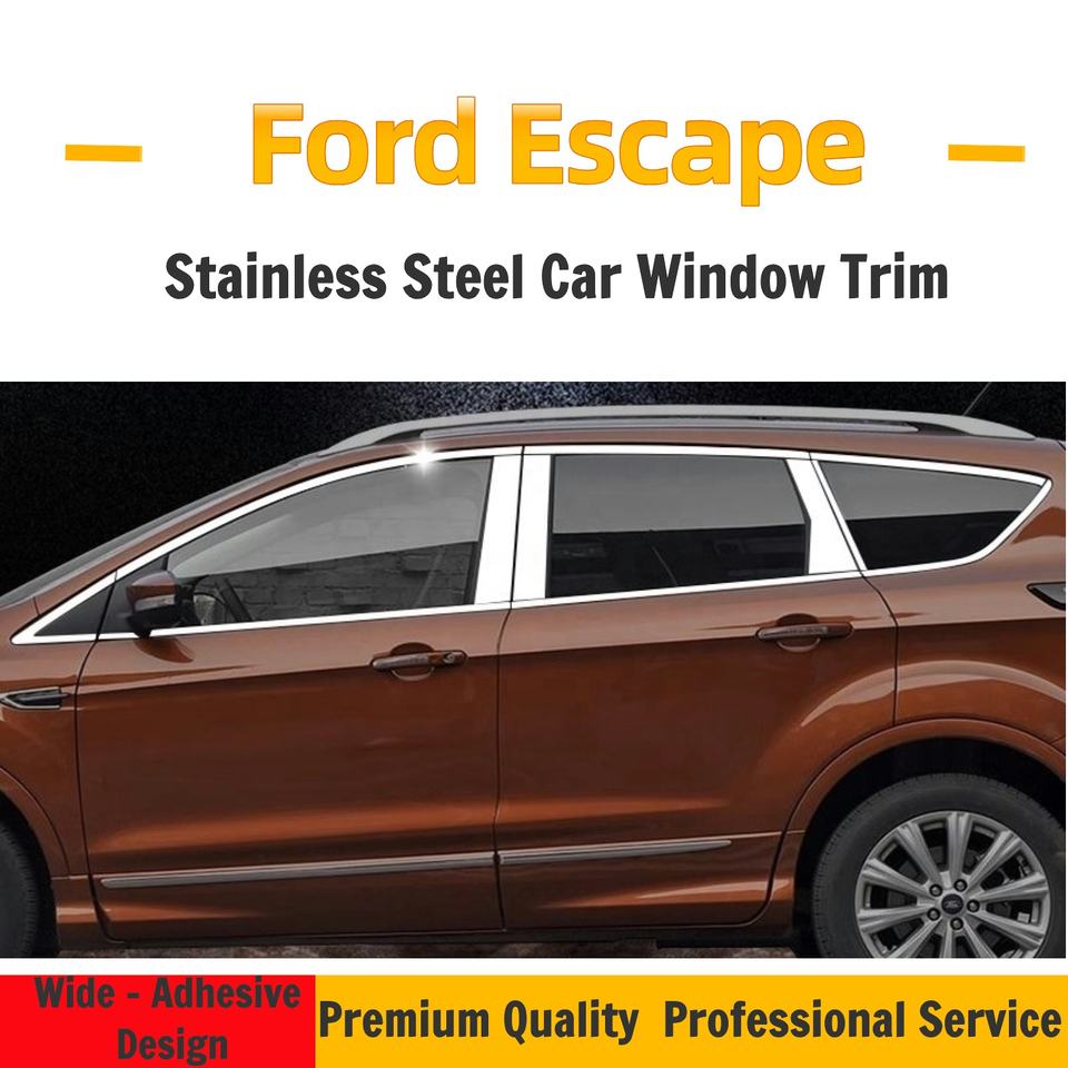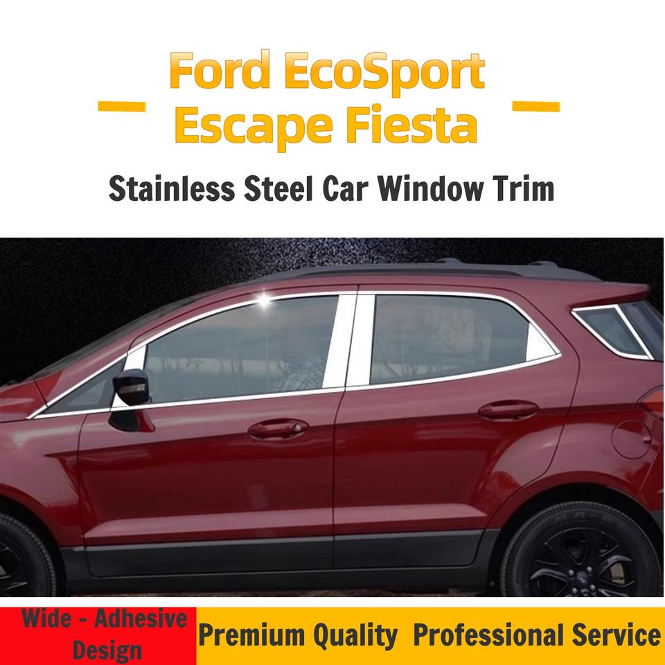 Garniture de fenêtre de voiture en acier inoxydable pour Ford EcoSport Escape Fiesta Bandes décoratives personnalisées en chrome brillant pour berline et hayon