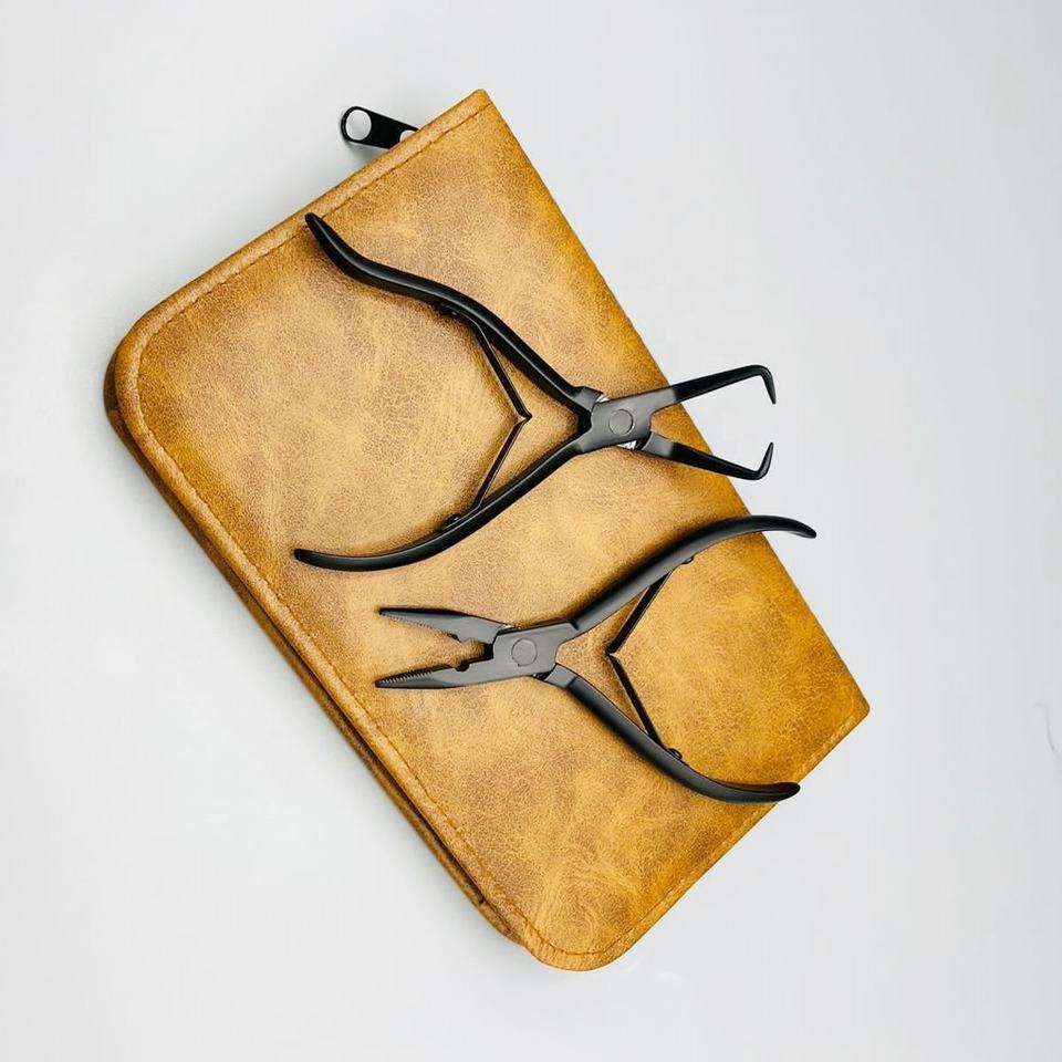 Pince à chaîne en acier inoxydable et pince à aiguille pour presser et enlever les perles d'outils d'extension de cheveux enduits de poudre noire