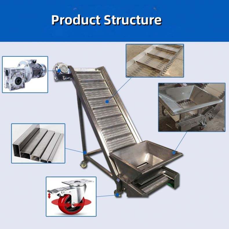 Convoyeur à plaques en acier inoxydable pour matériaux lourds, convoyeur à copeaux, élévateur à déflecteurs pour matériaux