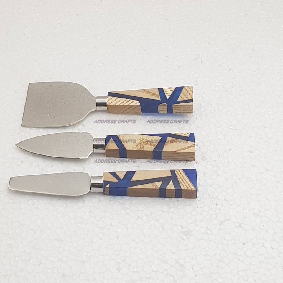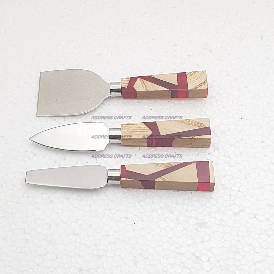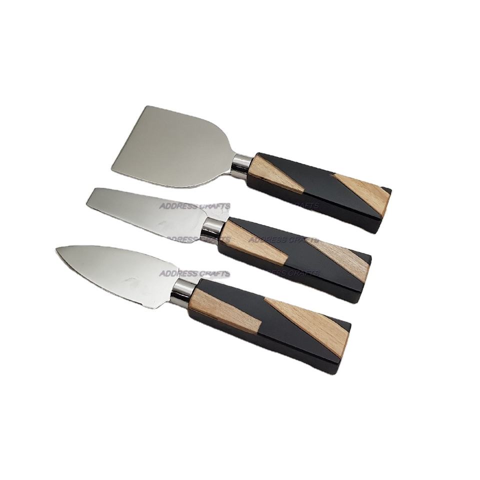 Ensemble de couteaux à fromage en acier inoxydable avec élégant manche en résine et bois Ustensiles de cuisine de luxe pour fêtes d'anniversaire