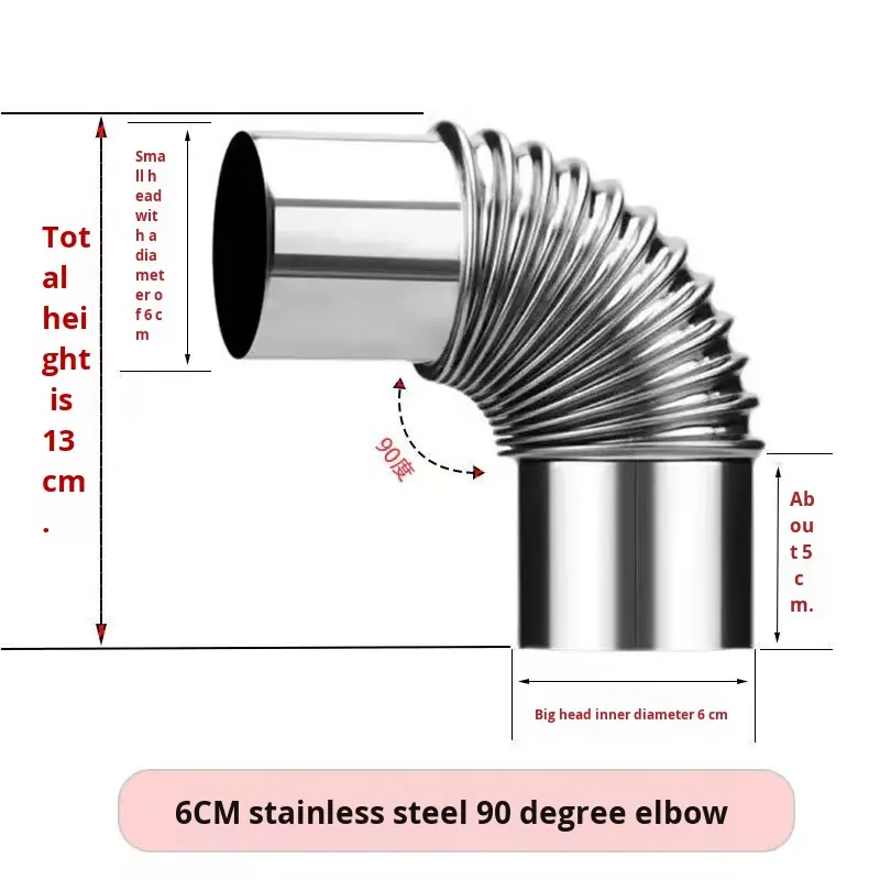 Coude de cheminée en acier inoxydable pour poêle à bois, chauffage extérieur, usage domestique, ventilation d'évacuation des fumées