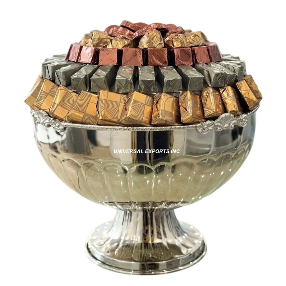 Bol à chocolat décoratif en métal argenté nickelé, bol à bonbons décoratif de forme ronde, nouveau bol à chocolat design