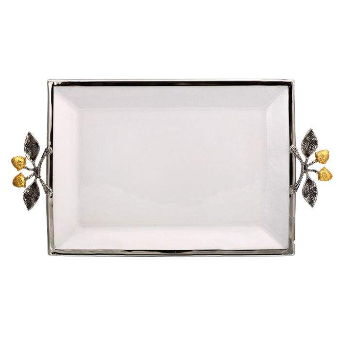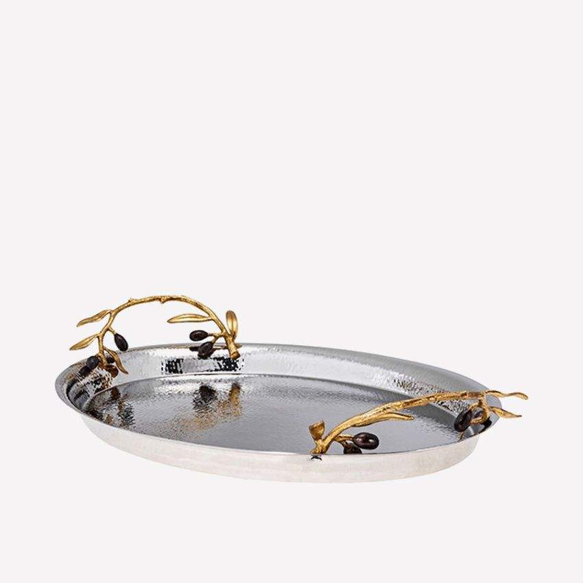 Plateau de service classique en acier inoxydable, non toxique et personnalisable, qui rehausse l'esthétique des plats pour brunch, goûter, dîners et réceptions.