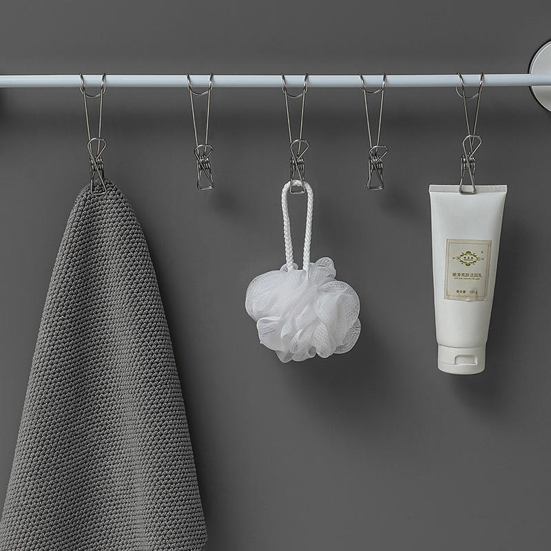 Stainless Steel Clothes Clip Rectangle Durable Hook Type For Bathroom Towel Hanging
