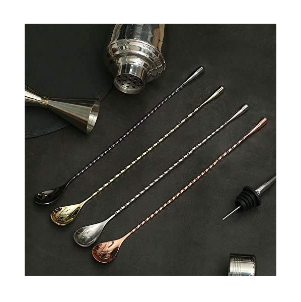Cuillère à cocktail en acier inoxydable avec filtre et motif en spirale – Cuillère de bar en acier inoxydable pour cocktails – Vente en gros