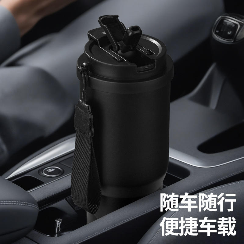 Stainless Steel Coffee Cup With Handle Strap And Straw Insulated Travel Mug For Car Use
