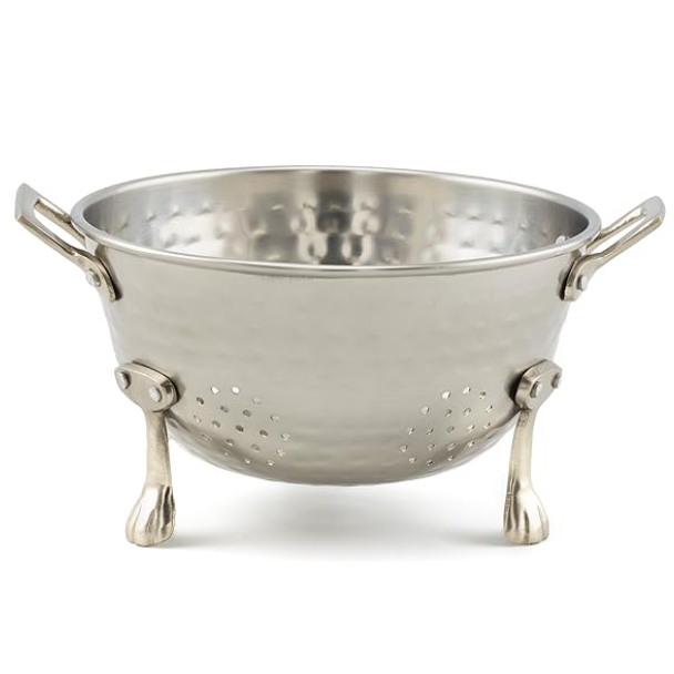 Passoire en acier inoxydable avec cuvette pour pieds Passoire à aliments de cuisine polie et brillante Passoire en métal pour fruits et légumes
