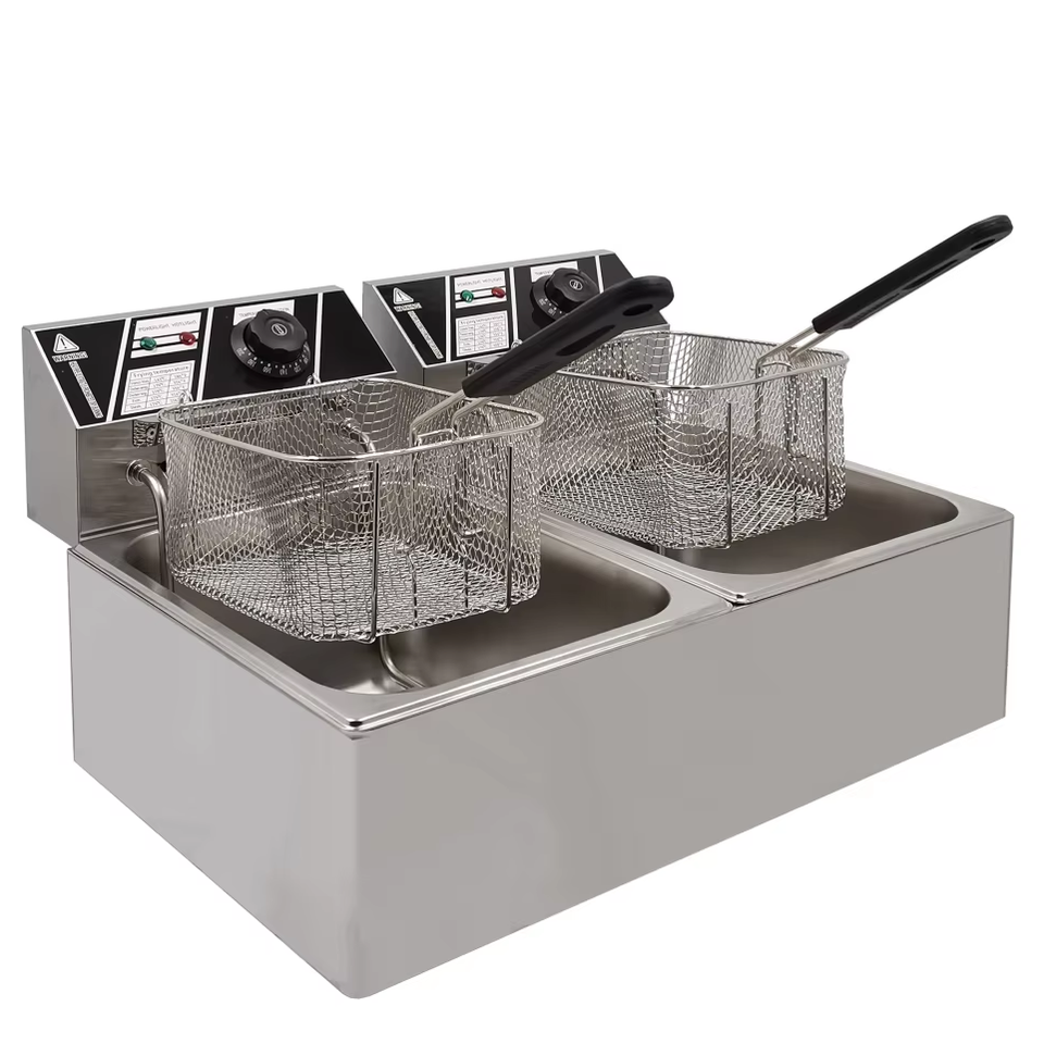 Friteuse électrique professionnelle à double cuve en acier inoxydable pour restaurant, maison, frites, poulet, cuisine