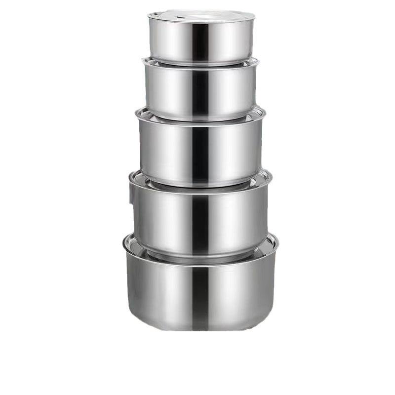 Ensemble de casseroles en acier inoxydable 5 pièces avec couvercle, design profond, compatible four, antirouille, pour usage en cuisine
