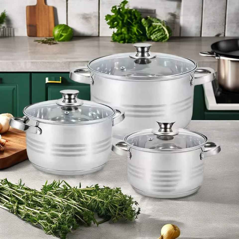 Ensemble de casseroles en acier inoxydable avec couvercle en verre, compatible induction, marmite, soupière, ensemble d'ustensiles de cuisine