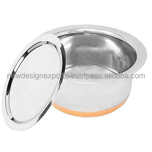Casserole en acier inoxydable avec fond en cuivre, capacité de 5 litres, gris acier, Bhagona