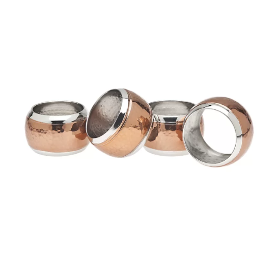 Anneau de Serviette en acier inoxydable, motif cuivre, vaisselle de table, assiette personnelle, porte-rouleau de tissu martelé, anneau de Serviette