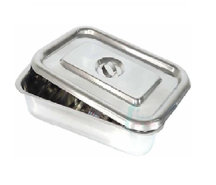 Plateau d'instruments en acier inoxydable avec couvercle Solution de stockage stérile durable pour instruments médicaux et cliniques chirurgicaux