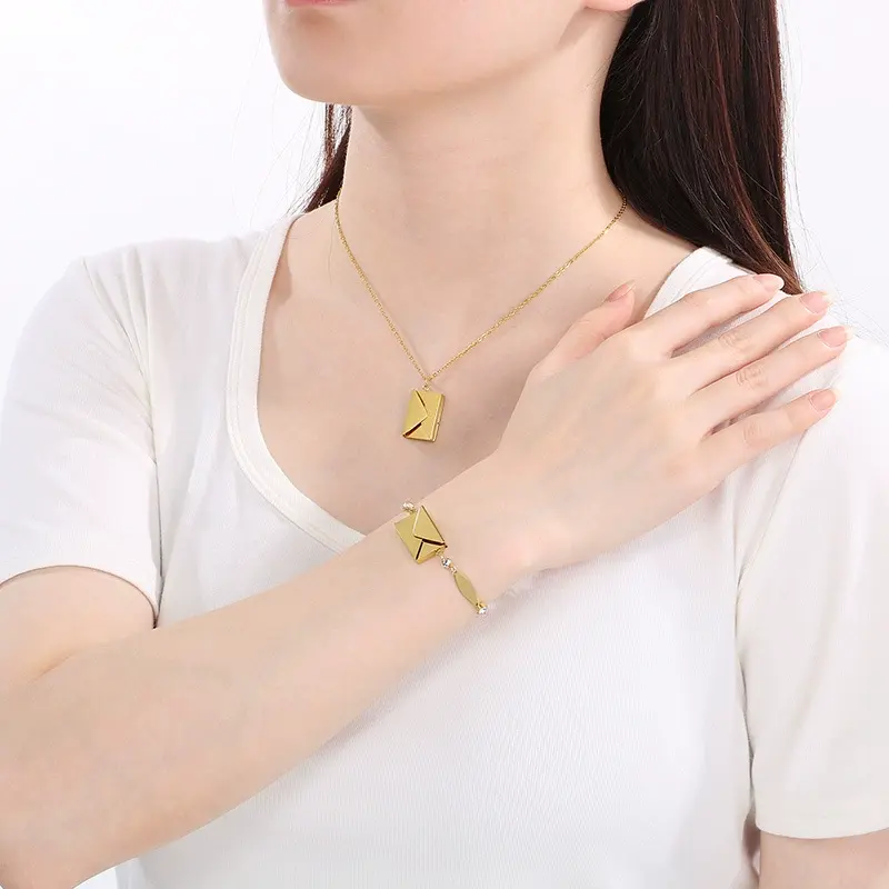 Enveloppe de Couple Personnalité Créative en Acier Inoxydable Gravée Livre Collier Bracelet Accessoires Bijoux de Couple Personnalisés