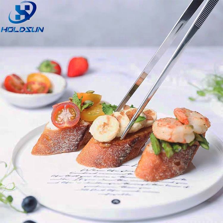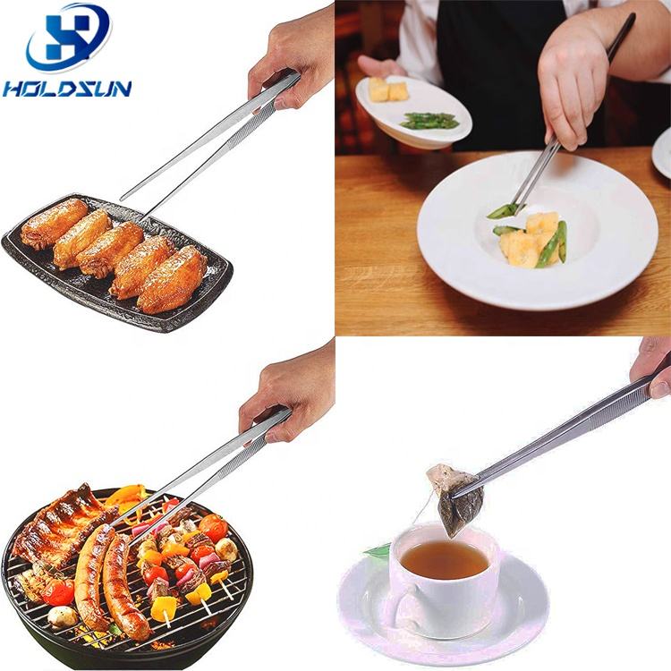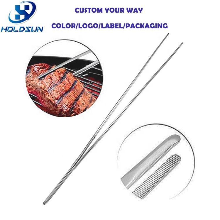 Pince à épiler en acier inoxydable avec logo personnalisé argent longue ligne droite pince à barbecue outil de cuisine 30cm