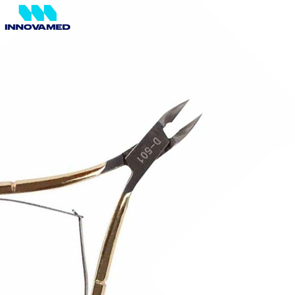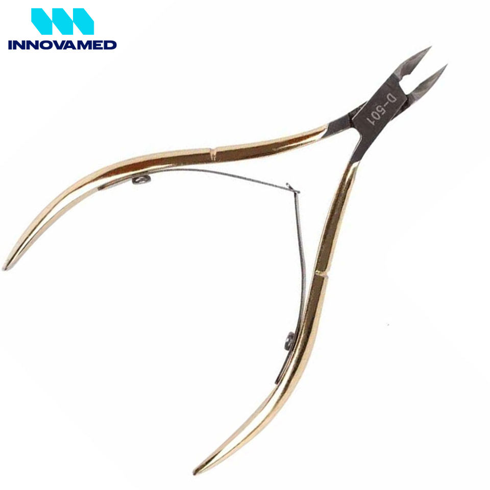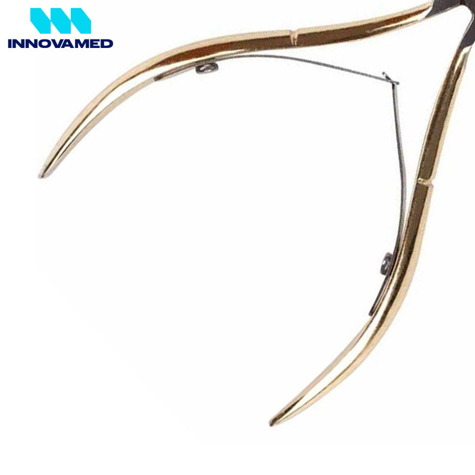 Pince à cuticules russe en acier inoxydable, couleur dorée personnalisée, poignée antidérapante, ouverture large, lame tranchante pour le soin des ongles des pieds