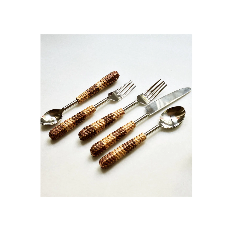 Couverts en acier inoxydable Poignées en rotin Durable 10 pièces Prix raisonnable Cuillère à couverts de qualité supérieure Prix bon marché