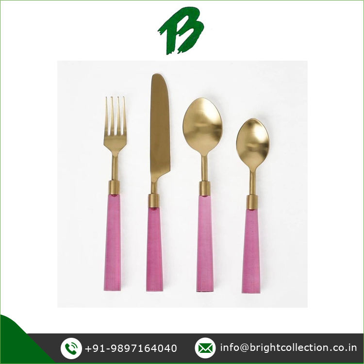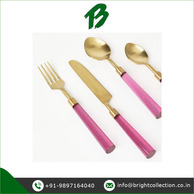 Ensemble de couverts en acier inoxydable de la meilleure qualité ensemble de couverts en or à manche en résine disponible pour les acheteurs en gros à un prix fiable
