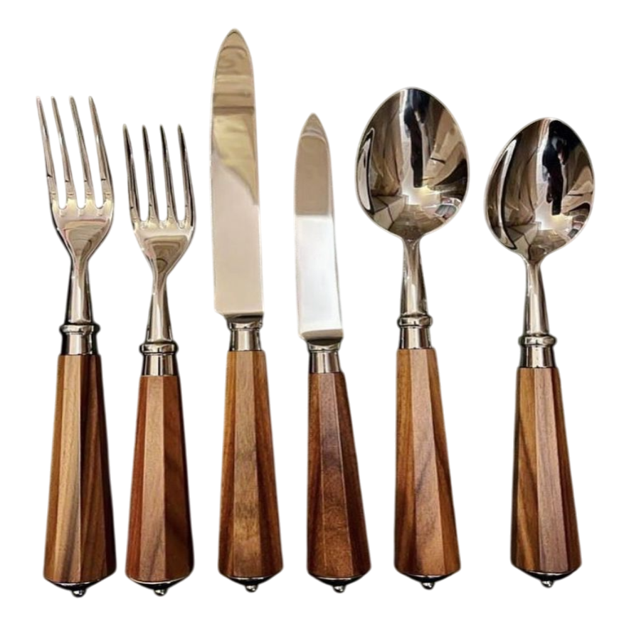 Ensemble de couverts en acier inoxydable lot de 6 cuillères fourchettes disponibles en design personnalisé avec poignées en bois de grande qualité