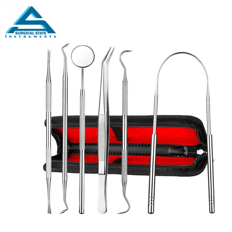 Kit dentaire en acier inoxydable, 6 pièces, pour dentiste, outils de nettoyage buccaux, pincettes de sonde