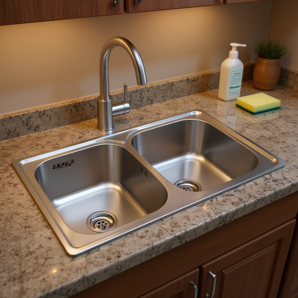 Évier de cuisine double en acier inoxydable à encastrer, rectangulaire, surface polie, facile à nettoyer