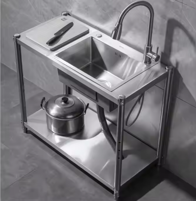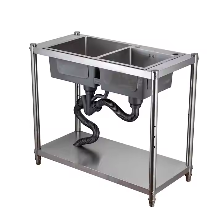 Stainless Steel Double Bowl Household Kitchen Sink Water Bracket for Rental Home Freestanding Commercial