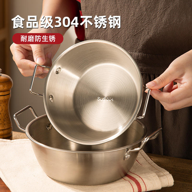 Stainless Steel Double-Handled Bowl With Capibala Spoon Oatmeal Bowl For Breakfast And Salad Large Capacity Cooking Bowl