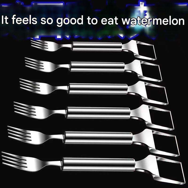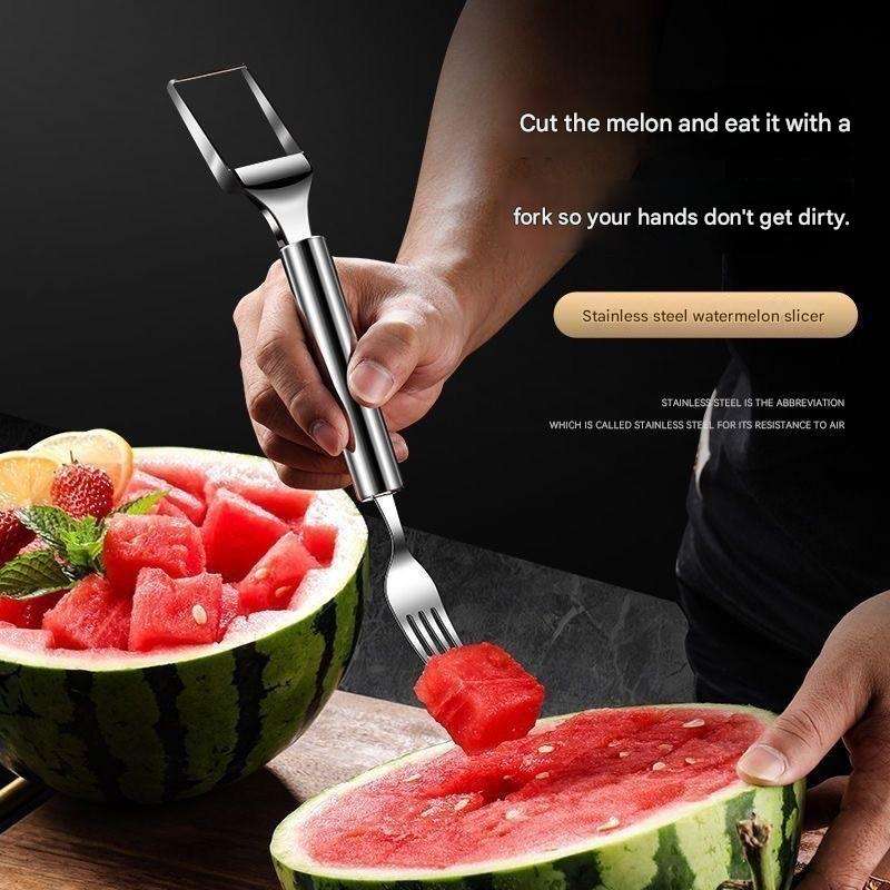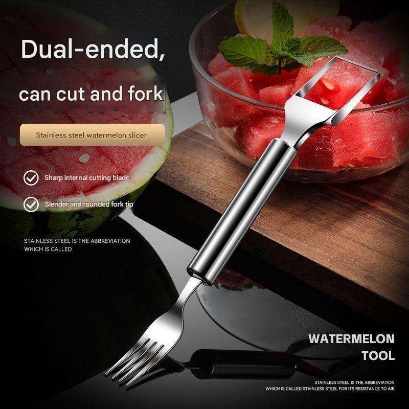 Coupe-pastèque double tête en acier inoxydable, fourchette à fruits, outil de séparation multifonctionnel pour barbecue, cuisine, pique-nique en extérieur