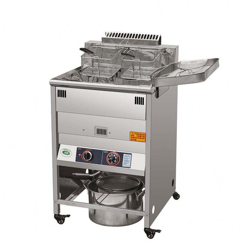 Friteuse à gaz double cuve en acier inoxydable pour poulet et autres aliments – Équipement de restauration pour boulangeries et restaurants