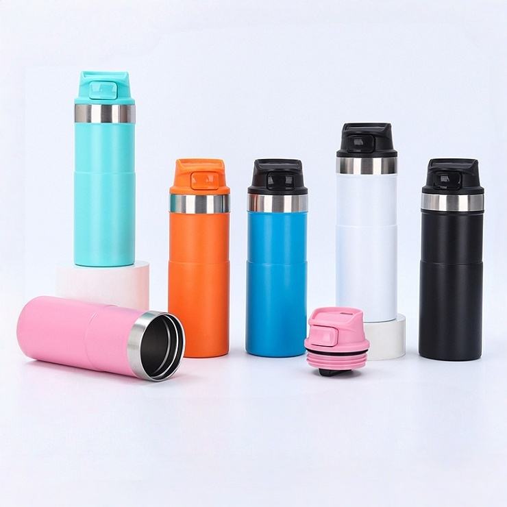 Bouteille d'eau portable en acier inoxydable à double paroi avec action de déclenchement, design classique, thermos de voyage sous vide