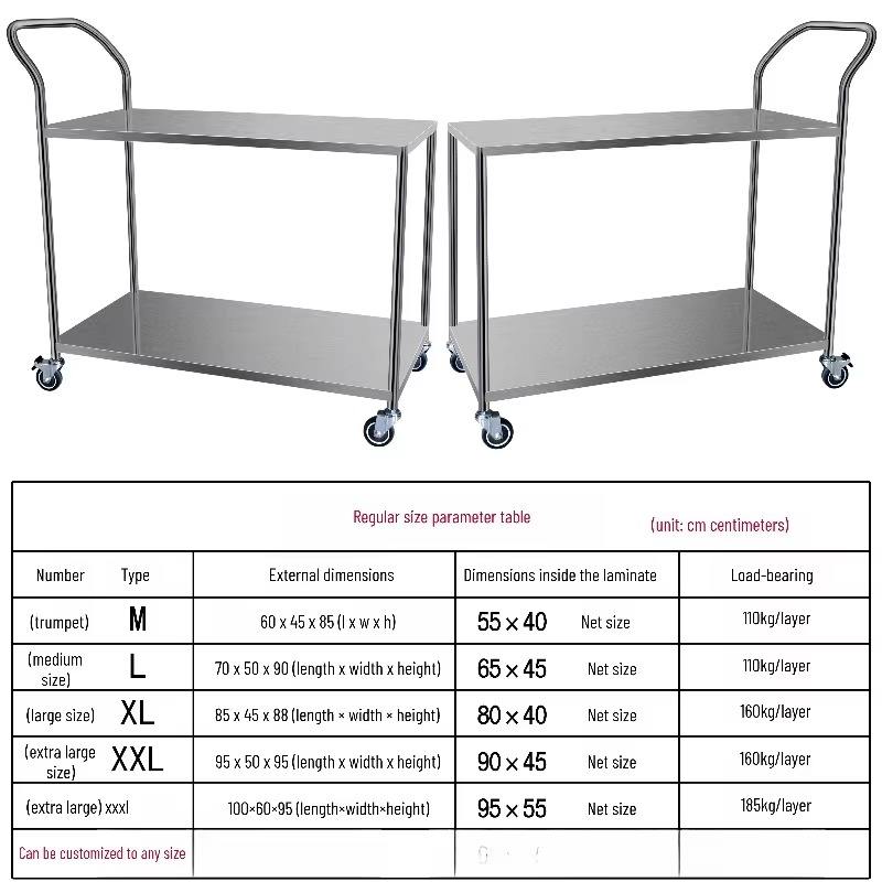 Chariot de manutention double couche en acier inoxydable pour le transport de marchandises