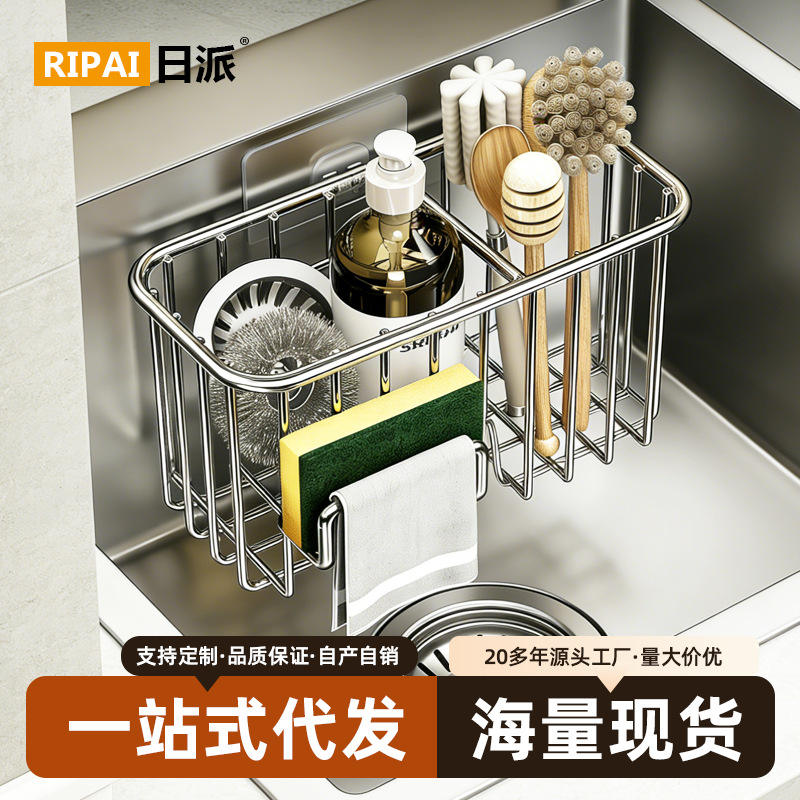 Égouttoir carré multifonctionnel en acier inoxydable pour évier de cuisine, panier de rangement pour vaisselle et bols avec support pour éponge et savon