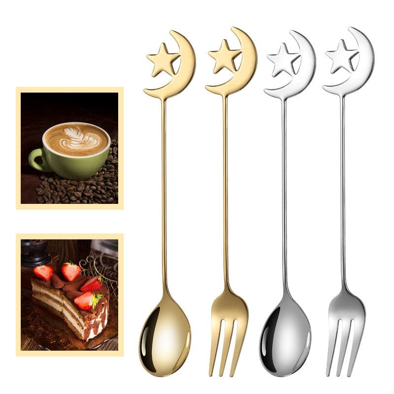 Cuillère et fourchette à café en acier inoxydable écologiques, couverts dorés, vaisselle musulmane Eid Mubarak Ramadan, cadeau