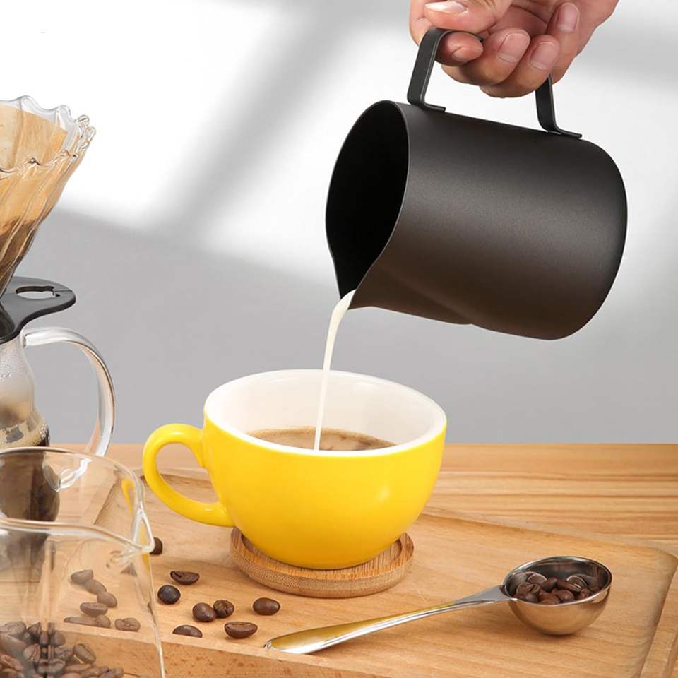 Pichet à mousse à lait en acier inoxydable écologique mini 600 ml noir pour barista arabe, café latte, pichet à mousse
