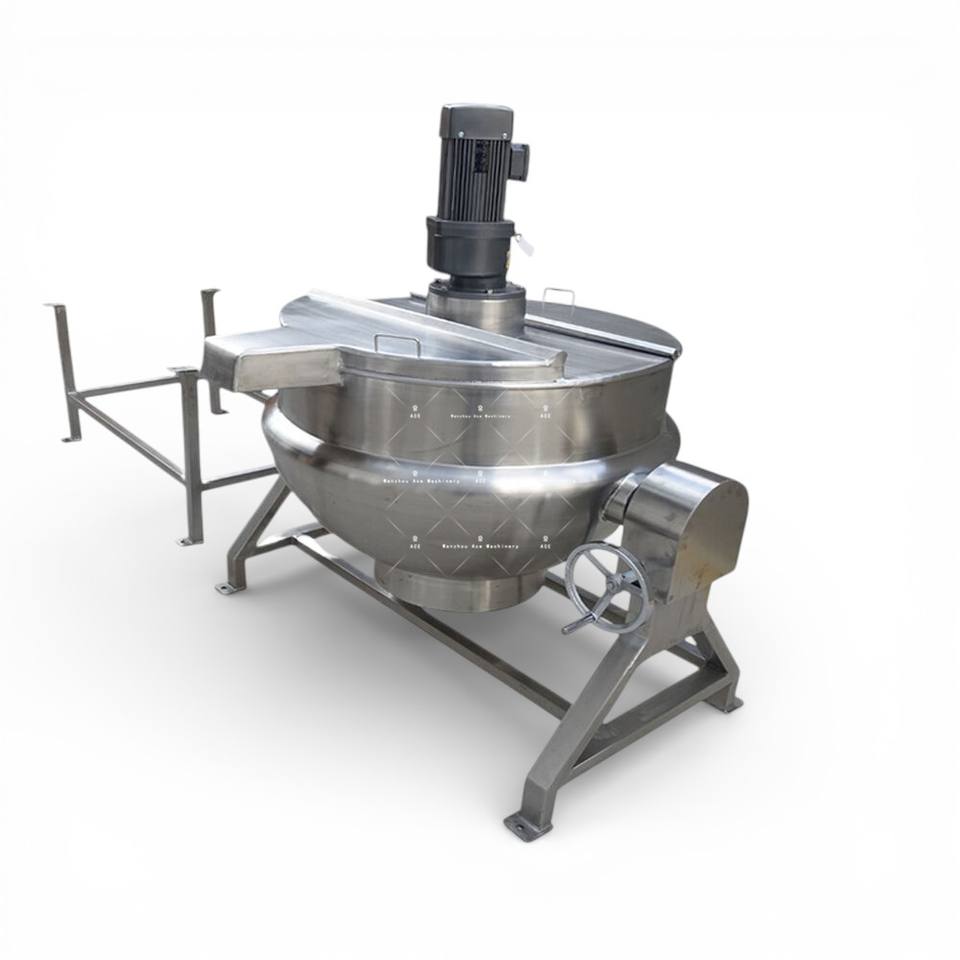 Marmite de cuisson industrielle électrique en acier inoxydable à double enveloppe vapeur avec agitateur pour la cuisson de soupes en cuisine