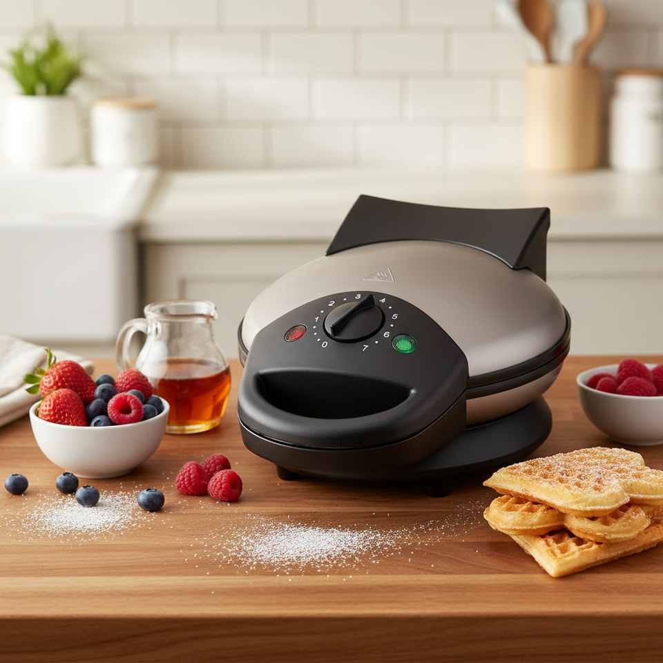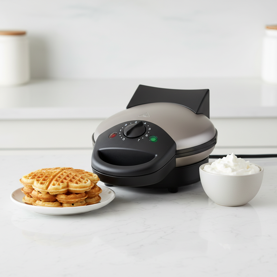 Gaufrier électrique en acier inoxydable en forme de cœur avec contrôle de brunissement réglable sur 7 niveaux, fer à gaufres rond classique 1400W