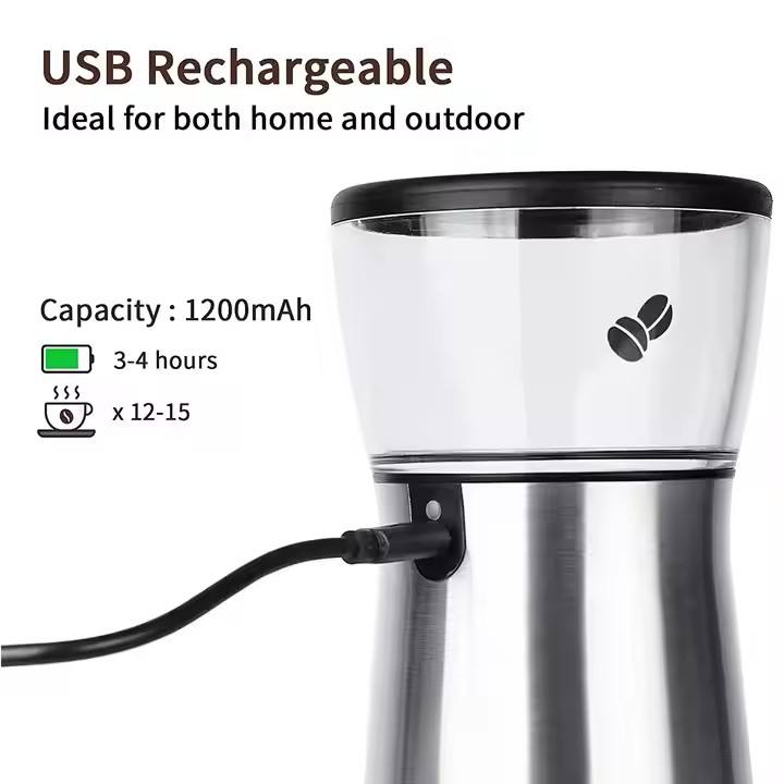 Moulin à café électrique USB en acier inoxydable Moulin à café en grains pour usage domestique