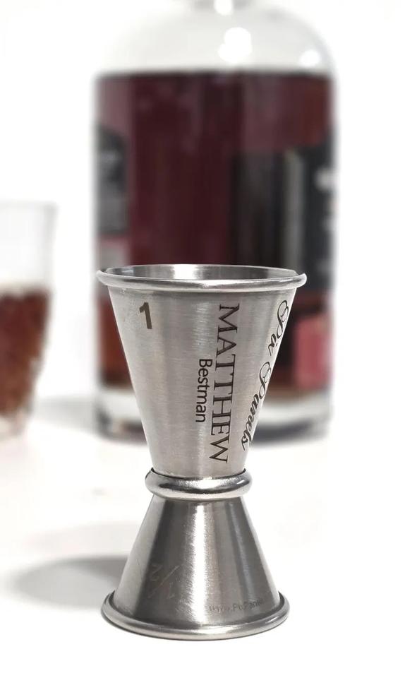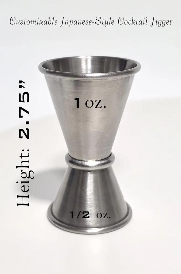 Jigger à double face en acier inoxydable gravé, outil de mesure de précision pour cocktails avec design équilibré pour une mesure précise