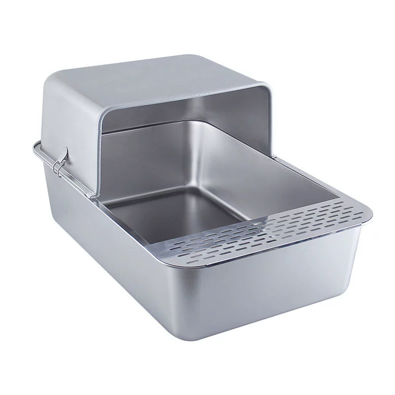 Semi-Open pleine litière pour chat en acier inoxydable