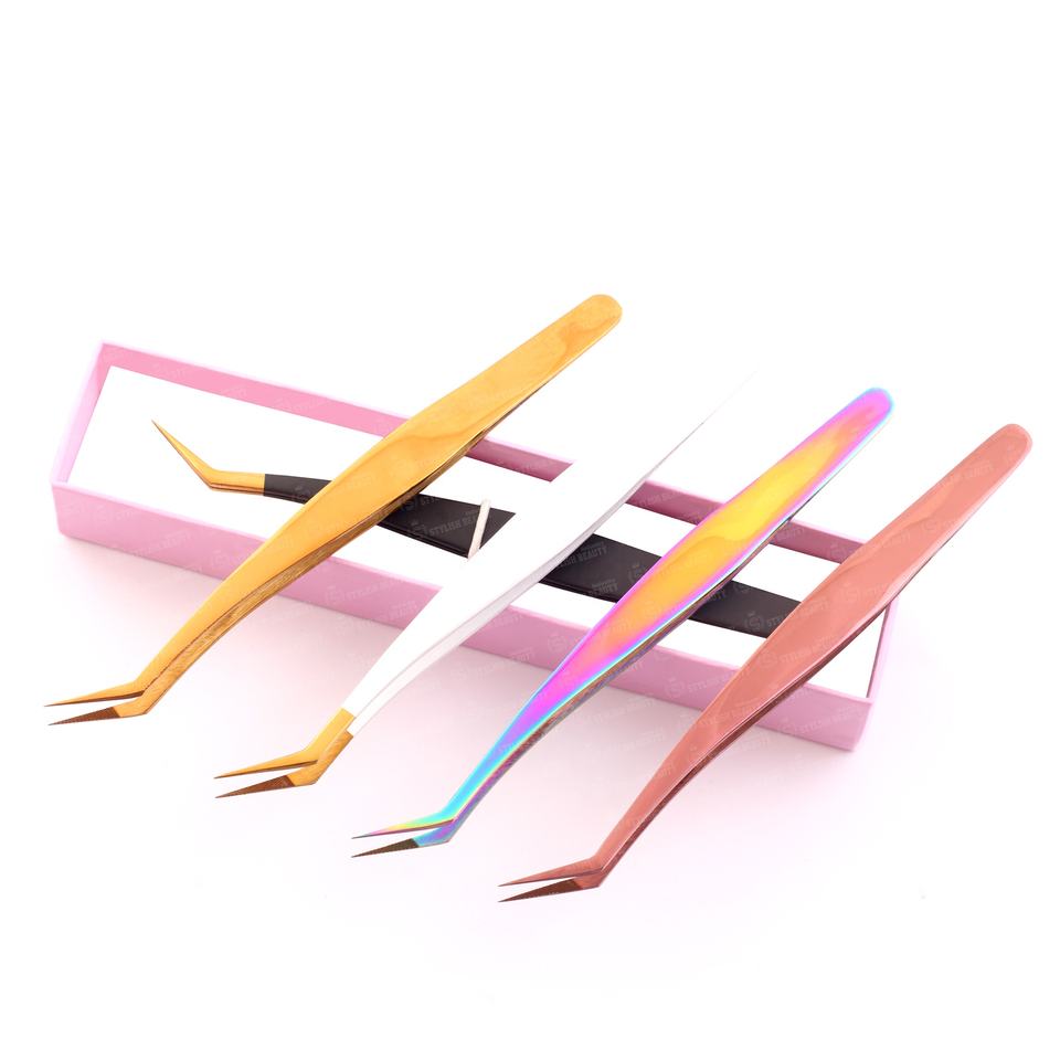 Pince à épiler pour extension de cils en acier inoxydable avec logo personnalisé en vrac accessoires outils pince à cils avec emballage en boîte