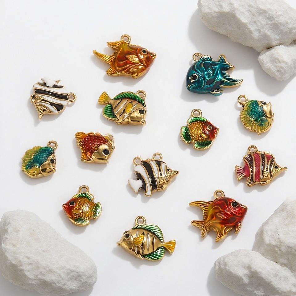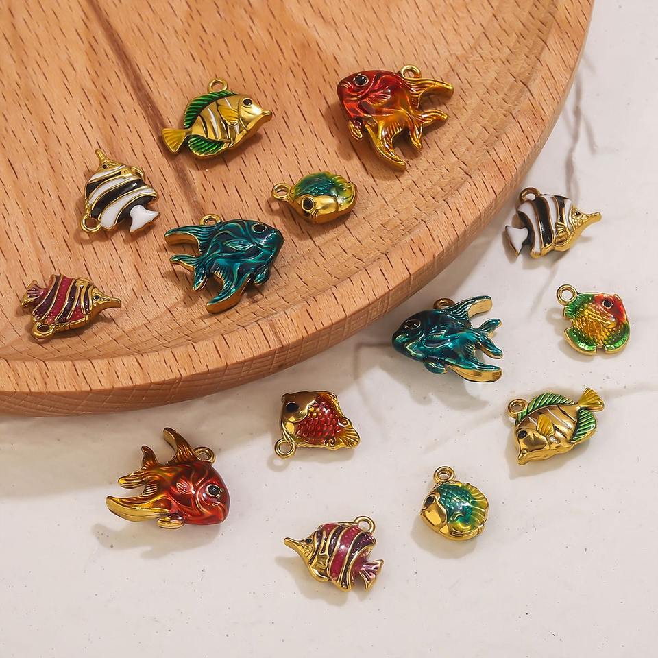 Breloques poisson en acier inoxydable plaqué or 18K pendentif poisson émail mignon breloque hirondelle poisson rouge poisson papillon pour la fabrication de bijoux