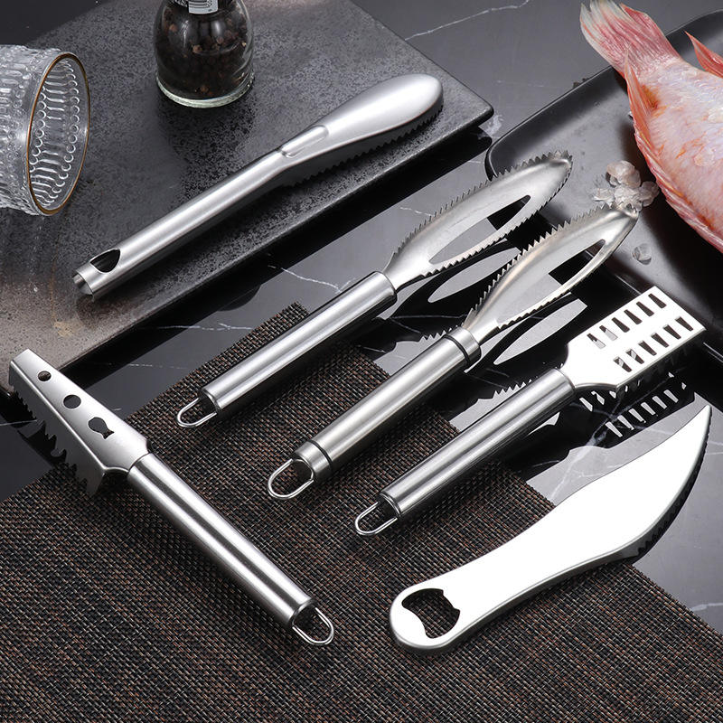 Ensemble d'écailleurs à poisson en acier inoxydable avec couteau, brosse et outil de détartrage pour fruits de mer