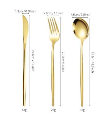 Couverts en acier inoxydable Ensemble de 5 pièces avec revêtement PVD Cuillère et fourchette à dîner Couteau à dîner Fourchette du désert et cuillère à thé