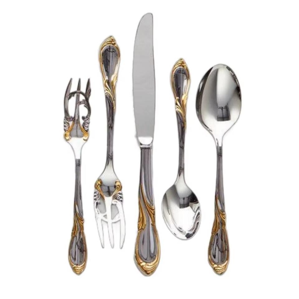 Couverts en acier inoxydable idéal cuisine table café usage domestique couleur argent plaqué couverts 2 couleurs design de luxe poignée ensemble de 5