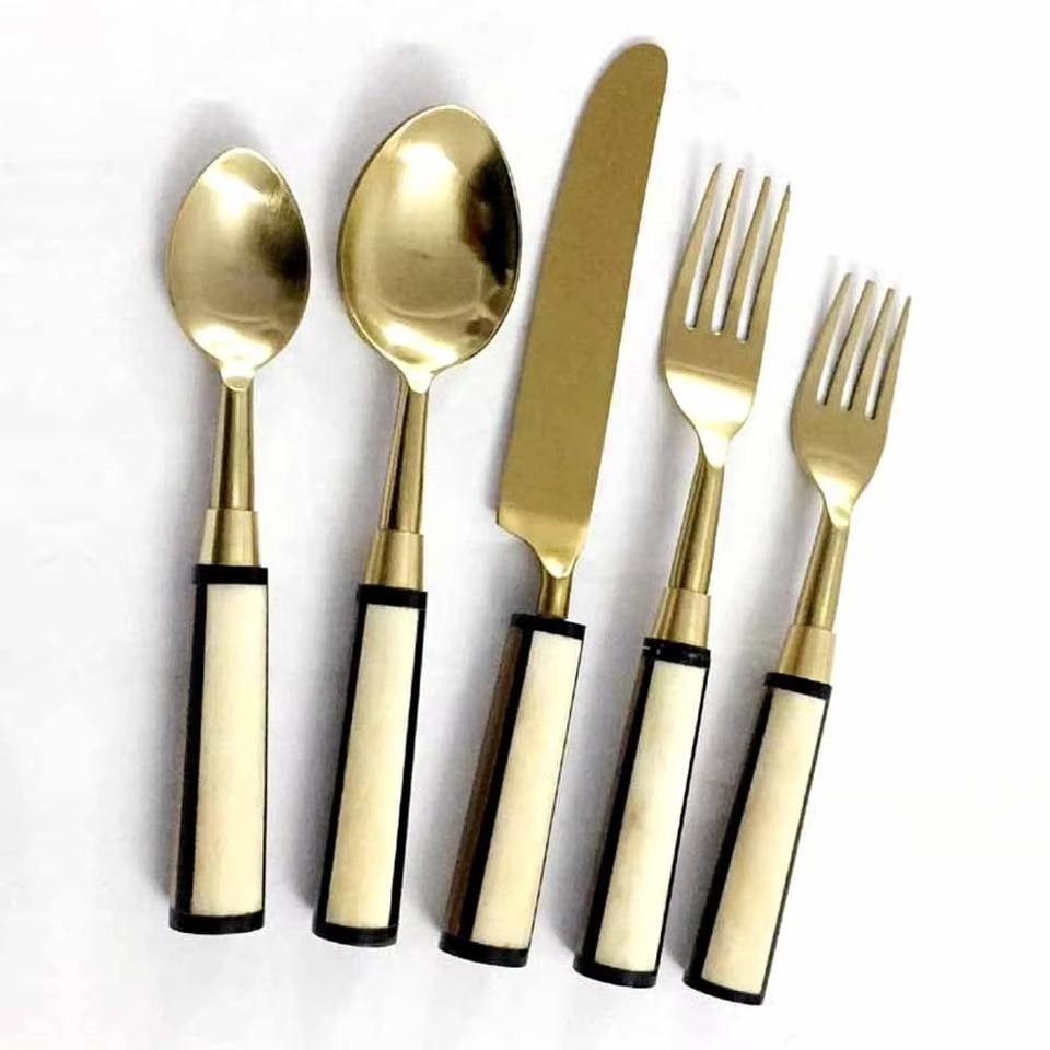 Couverts En Acier Inoxydable Idéal Cuisine De Table Café Maison Cuivre Couleur Enduit Couverts Finis Poignée En Marbre Noir Ensemble De 5 Pcs