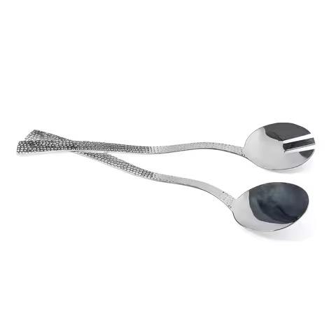 Ensemble de 2 serveurs à salade en acier inoxydable avec polissage pour la maison, design en bois de bonne qualité, serveur à salade