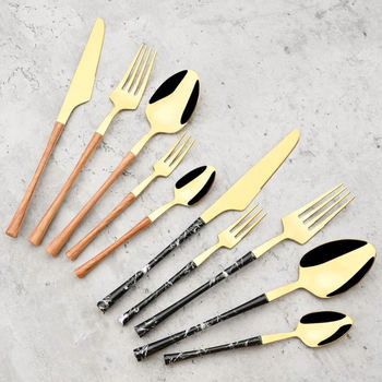 Ensemble de couverts en acier inoxydable manche en bois avec finition miroir parfait pour les ustensiles d'hôtel et de vaisselle ensembles de couverts usage quotidien