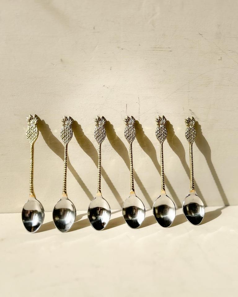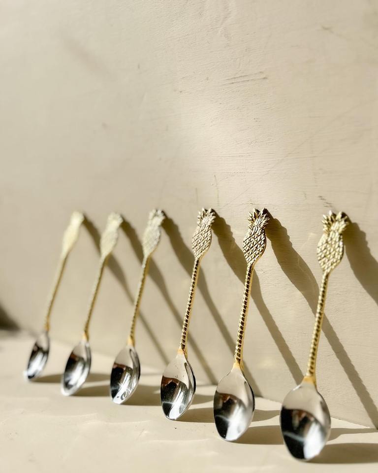 Ensemble de cuillères en laiton doré avec manche en forme d'arbre, parfait pour les événements élégants, les mariages, les restaurants et l'usage domestique, en provenance d'Inde