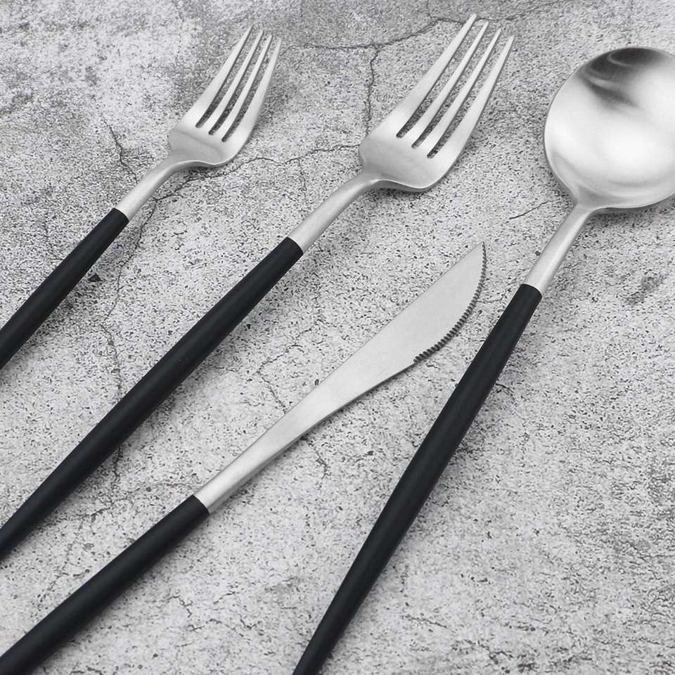 Couverts en acier inoxydable utilisés dans les ustensiles de cuisine Table Café Usage domestique Couverts finis plaqués couleur argent Poignée noire Lot de 4