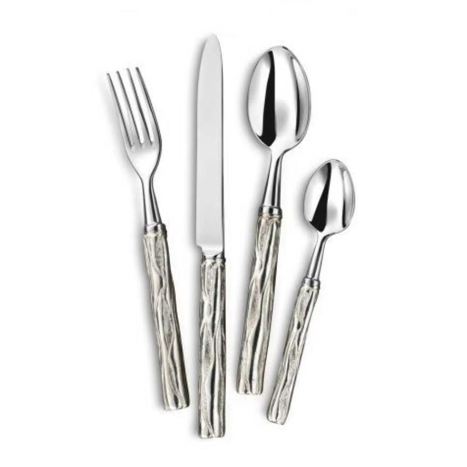 Couverts en acier inoxydable utilisés dans les ustensiles de cuisine café de table usage domestique couleur argent plaqué couverts finis poignée de concepteur en laiton